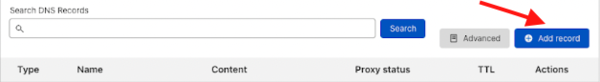 Once complete, go to DNS >> Records, and click on Add record, as you are now creating a subdomain record for your domain that will be your white label booking engine.