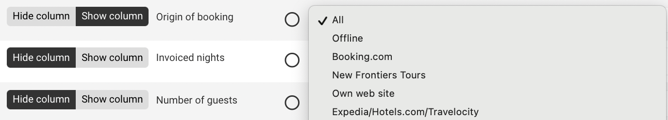 Origin of booking: This option shows which OTA’s the reservation is booked from.