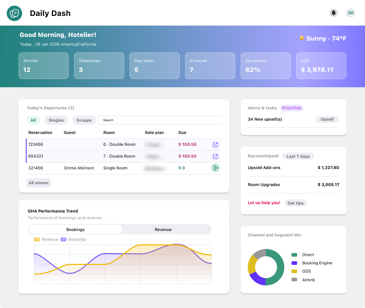 The new Daily Dash gives you a real-time overview of your property’s day. It brings together key operational, revenue, and risk insights in one central place—so you can instantly see what needs attention and where opportunities lie. You can find this new Module in your main menu.