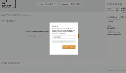 Se envía un código por correo electrónico al huésped para verificar su identidad.
