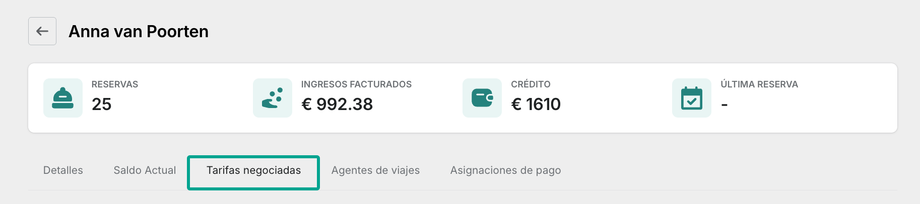 Una vez guardada, la tarifa negociada se aplicará automáticamente a todas las futuras reservas realizadas bajo ese perfil de reservante.