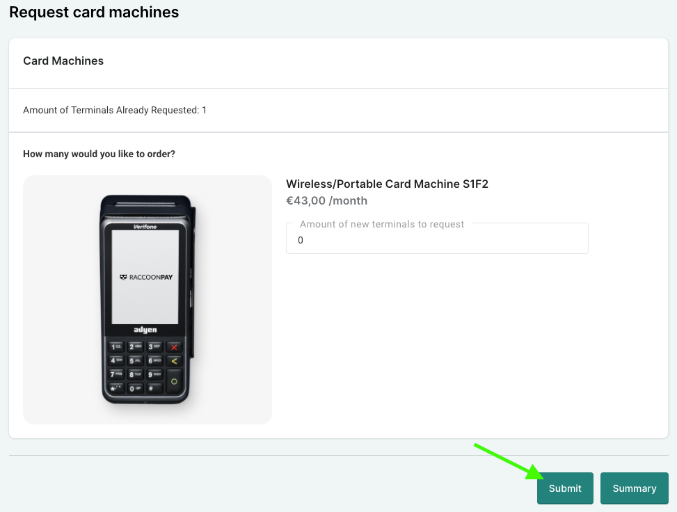 - Indiquez le nombre de machines à cartes que vous souhaitez commander